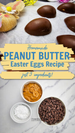 This Peanut Butter Eggs recipe is so simple and delicious, everyone in the family will love it. It reminds me of the famous chocolate peanut butter cups, but better because they’re made at home. The best part is that the recipe only uses three ingredients you probably already have in your pantry.